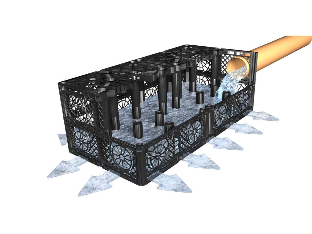 Bloky jsou navrženy tak, aby voda byla rovnoměrně rozdělena v celém objemu, to zvyšuje účinnost vsakování.