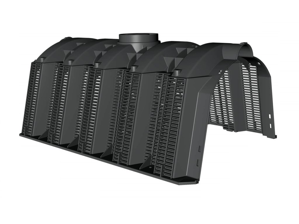 Celou sestavu obalte filtrační geotextilií. U otvorů pro připojení potrubí geotextilii nařízněte tak, aby přesně přiléhala.